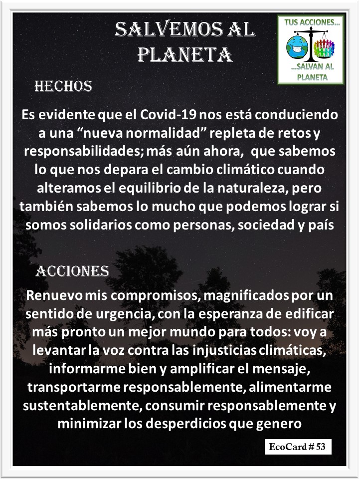 EcoCard # 53 Retos y responsabilidades José Antonio Cárdenas Marroquín Uncategorized July 8, 2020 1 Minute Lydia P. Vignau y José A. Cárdenas Mas Información: Things you can do Share this: Share on X (Opens in new window) X Share on Facebook (Opens in new window) Facebook Like Loading... Published July 8, 2020