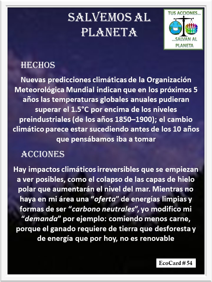 EcoCard # 54 Los próximos cinco años José Antonio Cárdenas Marroquín Uncategorized July 12, 2020July 12, 2020 1 Minute Lydia P. Vignau y José A. Cárdenas Mas Información: Global temperatures Share this: Share on X (Opens in new window) X Share on Facebook (Opens in new window) Facebook Like Loading... Published July 12, 2020July 12, 2020