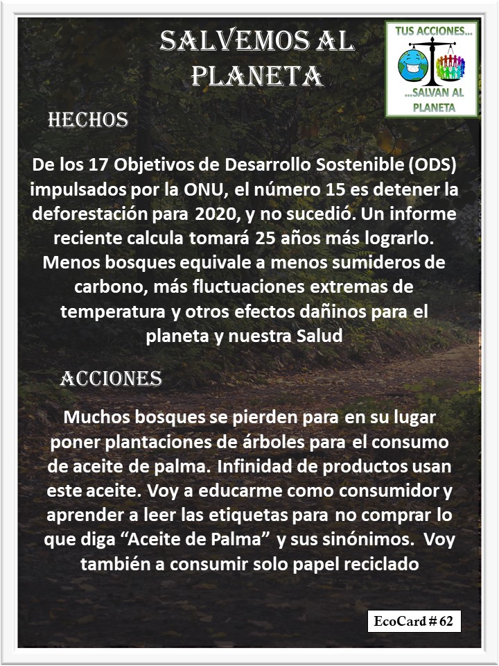 EcoCard # 62 Detener la deforestación José Antonio Cárdenas Marroquín Uncategorized July 27, 2020July 31, 2020 1 Minute Lydia P. Vignau y José A. Cárdenas Mas Información: Recursos forestales mundiales Share this: Share on X (Opens in new window) X Share on Facebook (Opens in new window) Facebook Like Loading... Published July 27, 2020July 31, 2020