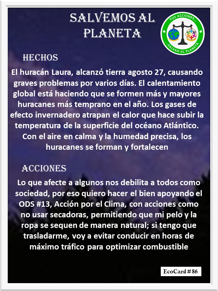 EcoCard # 86 Más y mayores huracanes José Antonio Cárdenas Marroquín Uncategorized August 30, 2020 1 Minute Lydia P. Vignau y José A. Cárdenas Más Información: Hurricane Laura Share this: Click to share on X (Opens in new window) X Click to share on Facebook (Opens in new window) Facebook Like Loading... Published August 30, 2020