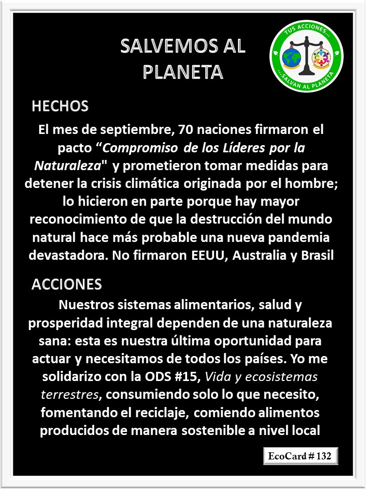 EcoCard # 132 Compromiso de los líderes José Antonio Cárdenas Marroquín Uncategorized October 25, 2020 1 Minute Lydia P. Vignau y José A. Cárdenas Más Información: World leaders pledge to protect nature Share this: Share on X (Opens in new window) X Share on Facebook (Opens in new window) Facebook Like Loading... Published October 25, 2020
