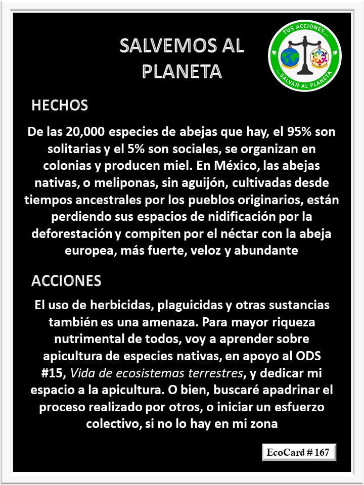 EcoCard # 167 Apicultura de especies nativas José Antonio Cárdenas Marroquín Uncategorized December 6, 2020December 6, 2020 1 Minute Lydia P. Vignau y José A. Cárdenas Más Información: Práctica milenaria Más Información: Ejemplo de apadrinamiento Share this: Share on X (Opens in new window) X Share on Facebook (Opens in new window) Facebook Like Loading... Published December 6, 2020December 6, 2020