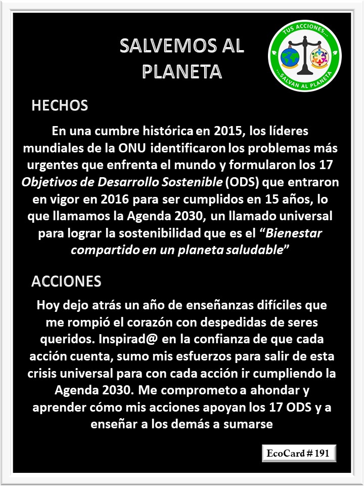 EcoCard # 191 Desarrollo sostenible José Antonio Cárdenas Marroquín Uncategorized January 1, 2021 1 Minute Lydia P. Vignau y José A. Cárdenas Más Información: Resumen del año 2020: la pandemia de COVID-19 que cerró el mundo Share this: Share on X (Opens in new window) X Share on Facebook (Opens in new window) Facebook Like Loading... Published January 1, 2021