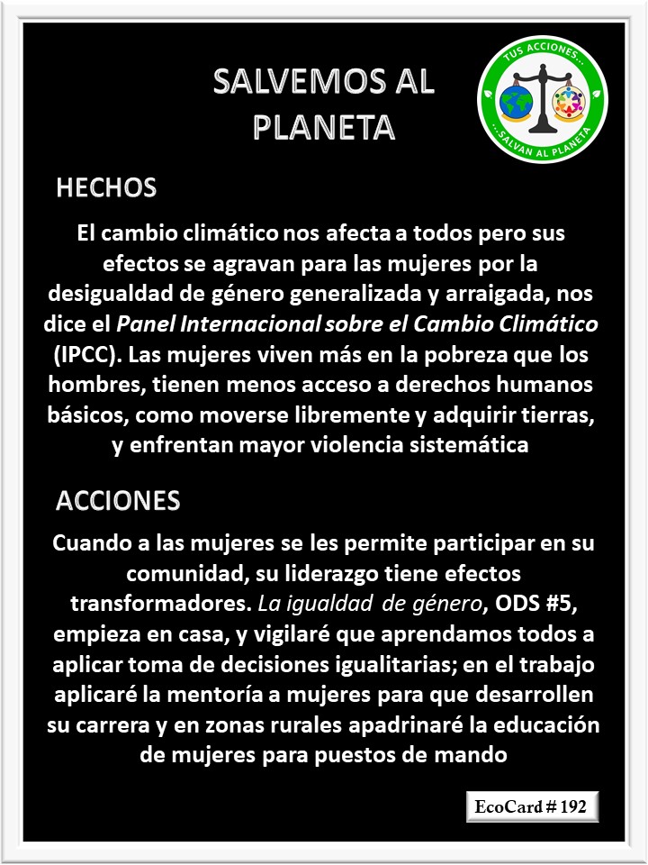 EcoCard # 192 Desigualdad de género José Antonio Cárdenas Marroquín Uncategorized January 2, 2021January 2, 2021 1 Minute Lydia P. Vignau y José A. Cárdenas Más Información: Climate change and women Para apoyar a empoderar mujeres en Oaxaca Share this: Click to share on X (Opens in new window) X Click to share on Facebook (Opens in new window) Facebook Like Loading... Published January 2, 2021January 2, 2021