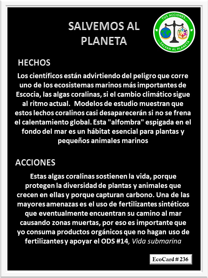 EcoCard # 236 Las algas coralinas José Antonio Cárdenas Marroquín Uncategorized February 25, 2021February 25, 2021 1 Minute Lydia P. Vignau y José A. Cárdenas Más Información: Scotland´s seabed Share this: Click to share on X (Opens in new window) X Click to share on Facebook (Opens in new window) Facebook Like Loading... Published February 25, 2021February 25, 2021