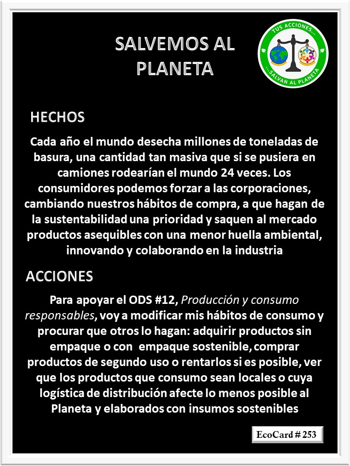 EcoCard # 253 Menor huella ambiental José Antonio Cárdenas Marroquín Uncategorized March 20, 2021March 20, 2021 1 Minute Lydia P. Vignau y José A. Cárdenas Más Información: Towards sustainable packaging Más Información: Shopping green Share this: Share on X (Opens in new window) X Share on Facebook (Opens in new window) Facebook Like Loading... Published March 20, 2021March 20, 2021