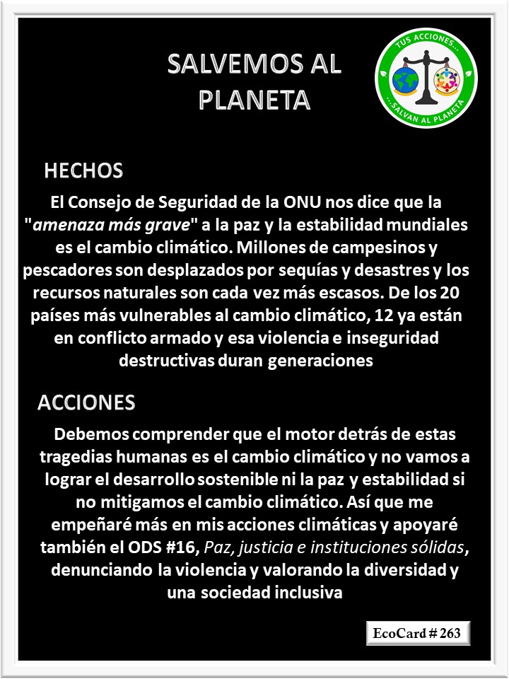 EcoCard # 263 Paz y estabilidad para todos José Antonio Cárdenas Marroquín Uncategorized March 31, 2021 1 Minute Lydia P. Vignau y José A. Cárdenas Más Información: Global peace and security Más Información: Sustainable development goal # 16 Share this: Share on X (Opens in new window) X Share on Facebook (Opens in new window) Facebook Like Loading... Published March 31, 2021