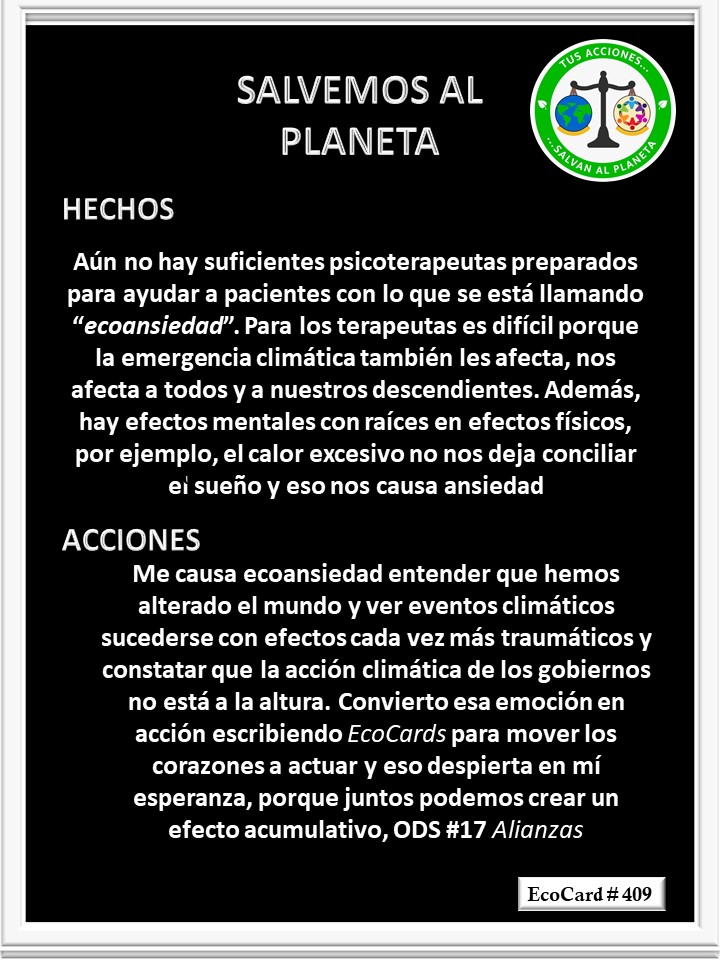 EcoCard # 409 Ecoansiedad José Antonio Cárdenas Marroquín Uncategorized September 14, 2021September 14, 2021 1 Minute Lydia P. Vignau y José A. Cárdenas Más Información: Climate anxiety Más Información: Del compromiso ambiental al ecoagobio Share this: Click to share on X (Opens in new window) X Click to share on Facebook (Opens in new window) Facebook Like Loading... Published September 14, 2021September 14, 2021