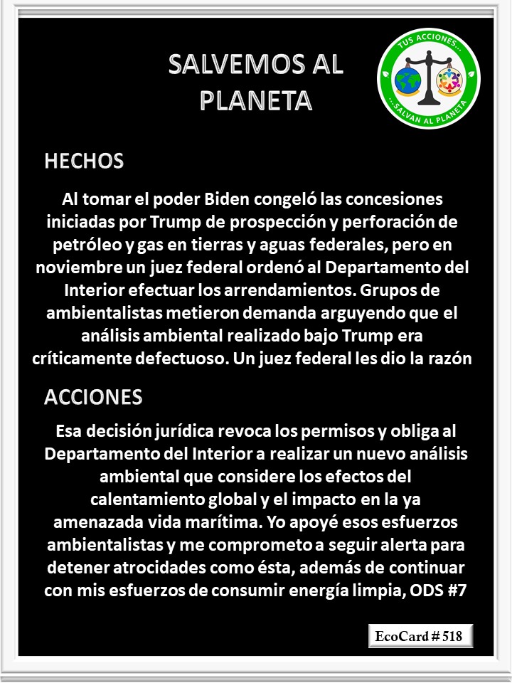 EcoCard # 518 Consumir energía limpia José Antonio Cárdenas Marroquín Uncategorized January 29, 2022 1 Minute Lydia P. Vignau y José A. Cárdenas Más Información: Federal judge cites climate crisis Share this: Share on X (Opens in new window) X Share on Facebook (Opens in new window) Facebook Like Loading... Published January 29, 2022