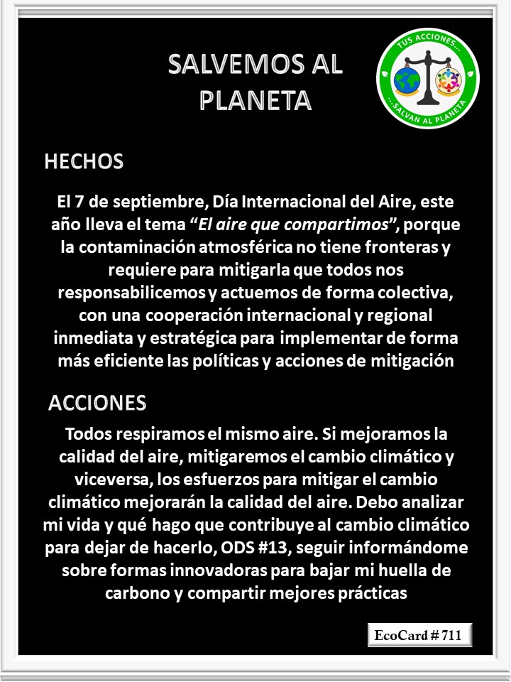 EcoCard # 711 El aire que compartimos José Antonio Cárdenas Marroquín Uncategorized September 7, 2022September 7, 2022 1 Minute Lydia P. Vignau y José A. Cárdenas Más información: Clean air day Share this: Click to share on X (Opens in new window) X Click to share on Facebook (Opens in new window) Facebook Like Loading... Published September 7, 2022September 7, 2022