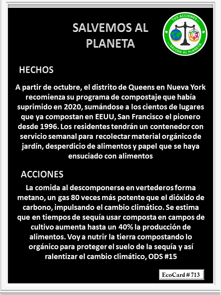 EcoCard # 713 Proteger el suelo José Antonio Cárdenas Marroquín Uncategorized September 9, 2022 1 Minute Lydia P. Vignau y José A. Cárdenas Más información: Curbside composting Más información: City composting Share this: Share on X (Opens in new window) X Share on Facebook (Opens in new window) Facebook Like Loading... Published September 9, 2022