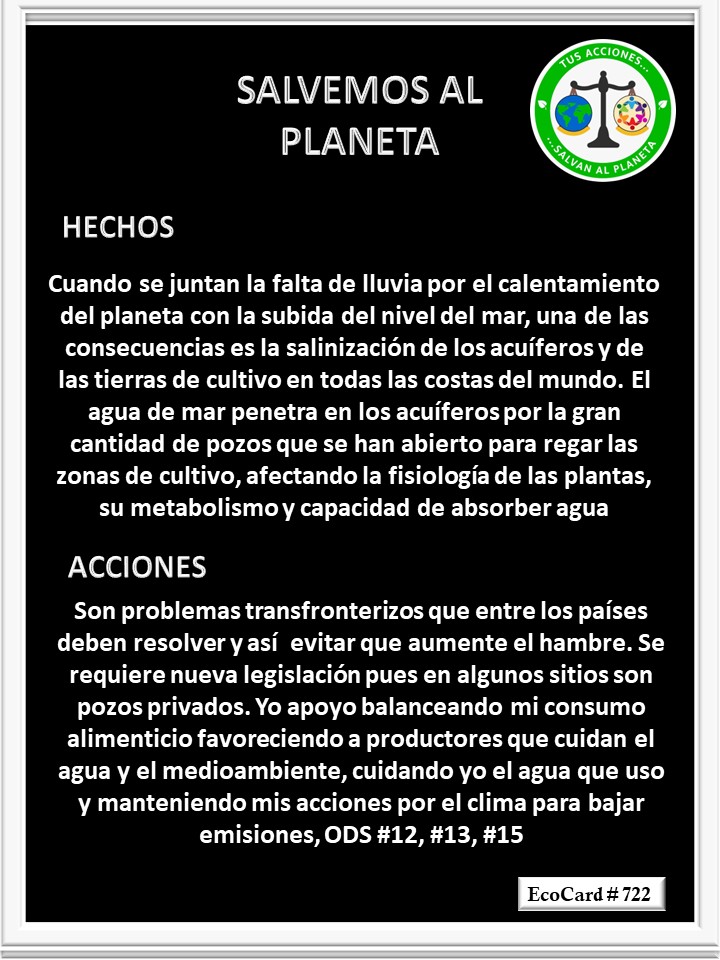 EcoCard # 722 Salinización de los acuíferos José Antonio Cárdenas Marroquín Uncategorized September 19, 2022 1 Minute Lydia P. Vignau y José A. Cárdenas Más información: Salinization and climate change Más información: Las tierras de la costa mediterránea peligran a causa de la salinización del agua de riego Share this: Click to share on X (Opens in new window) X Click to share on Facebook (Opens in new window) Facebook Like Loading... Published September 19, 2022