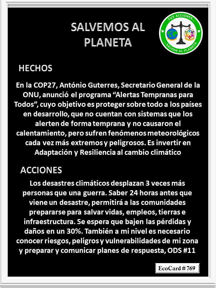 EcoCard # 769 Alertas tempranas José Antonio Cárdenas Marroquín Uncategorized November 9, 2022 1 Minute Lydia P. Vignau y José A. Cárdenas Más información: Early warning systems Más información: Sistema de alertas tempranas Share this: Share on X (Opens in new window) X Share on Facebook (Opens in new window) Facebook Like Loading... Published November 9, 2022