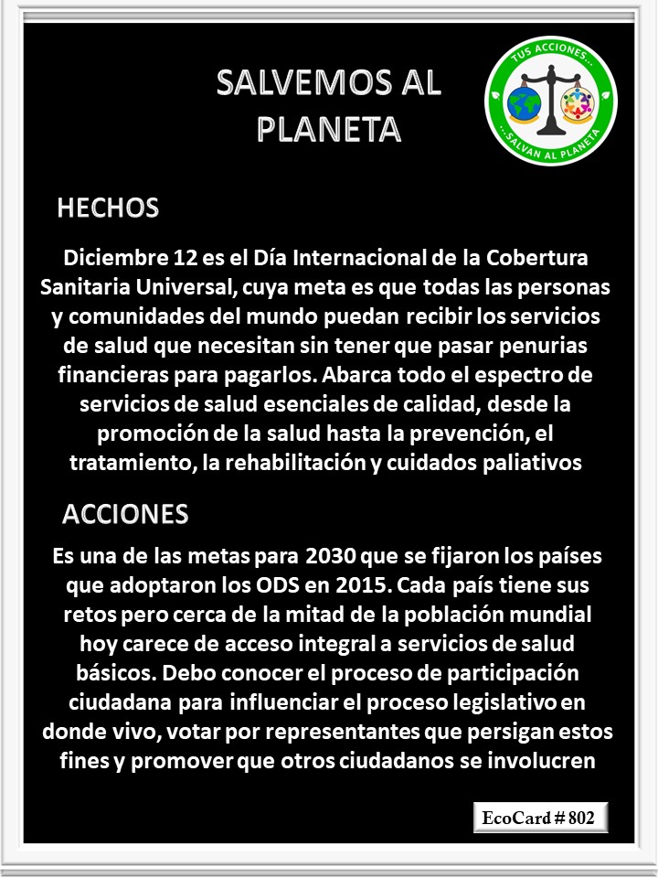 EcoCard #802 Cobertura sanitaria universal José Antonio Cárdenas Marroquín Uncategorized December 13, 2022December 13, 2022 1 Minute Lydia P. Vignau y José A. Cárdenas Más información: Universal health coverage day Más información: Covertura sanitaria universal Share this: Click to share on X (Opens in new window) X Click to share on Facebook (Opens in new window) Facebook Like Loading... Published December 13, 2022December 13, 2022