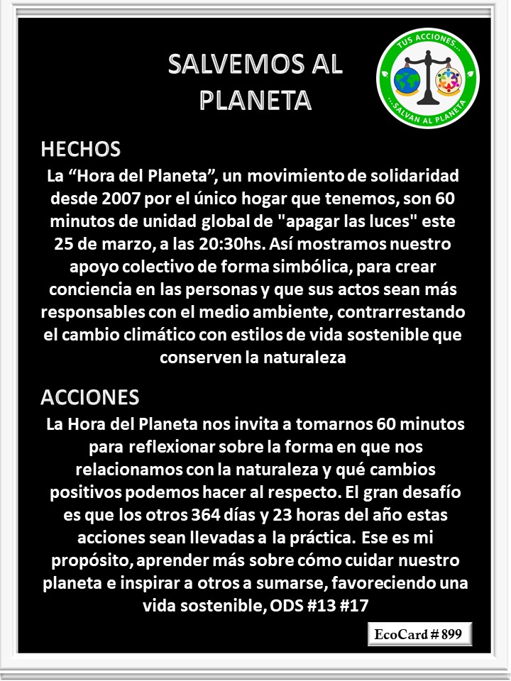 EcoCard #899 La Hora del Planeta José Antonio Cárdenas Marroquín Uncategorized March 25, 2023March 25, 2023 1 Minute Lydia P. Vignau y José A. Cárdenas Más información: The Earth Hour Share this: Share on X (Opens in new window) X Share on Facebook (Opens in new window) Facebook Like Loading... Published March 25, 2023March 25, 2023