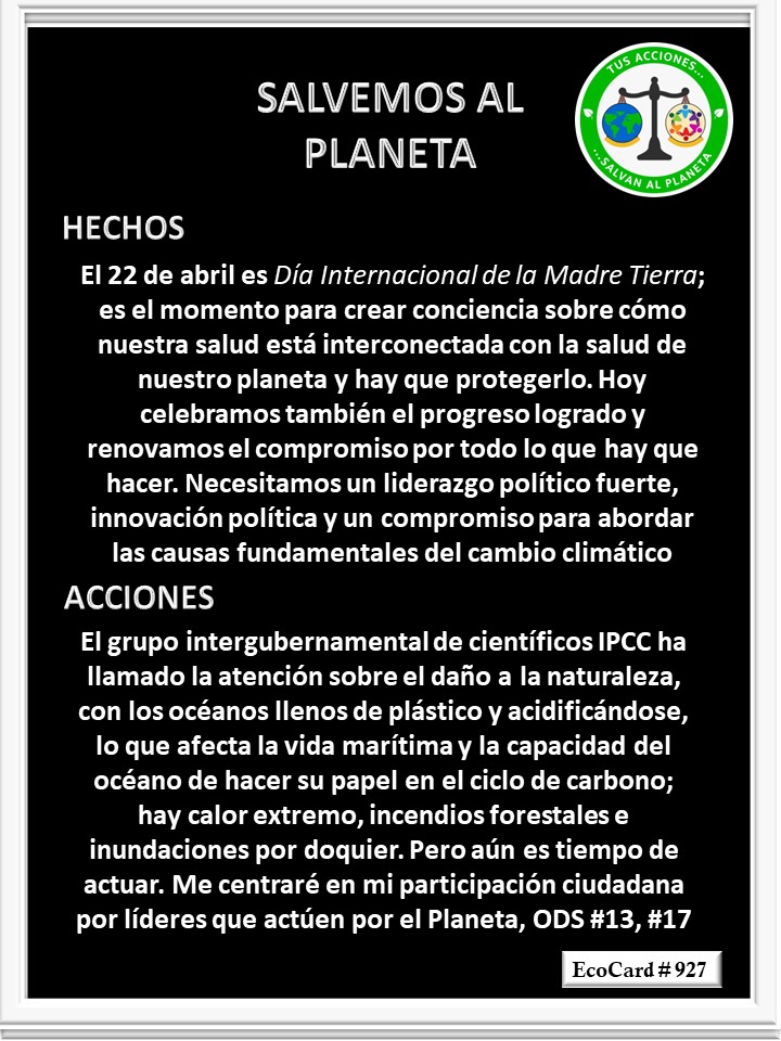 EcoCard # 927 La Madre Tierra José Antonio Cárdenas Marroquín Uncategorized April 22, 2023 1 Minute Lydia P. Vignau y José A. Cárdenas Más información: Earth Day Share this: Click to share on X (Opens in new window) X Click to share on Facebook (Opens in new window) Facebook Like Loading... Published April 22, 2023