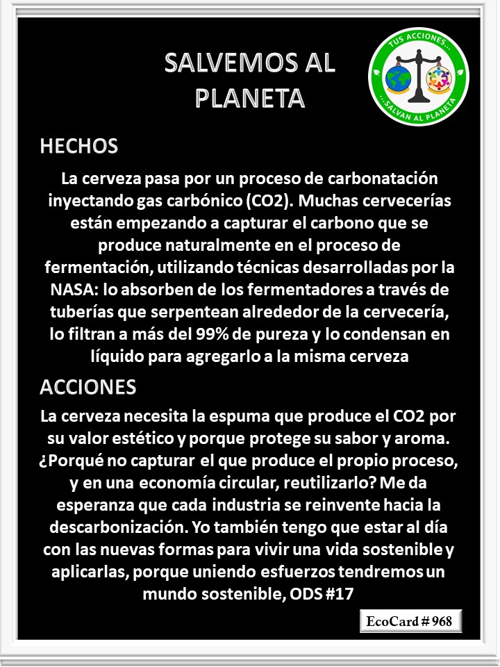 EcoCard # 968 Nuevas formas de vivir José Antonio Cárdenas Marroquín Uncategorized June 4, 2023June 4, 2023 1 Minute Lydia P. Vignau y José A. Cárdenas Más información: Breweries are starting to capture carbon — from beer Share this: Share on X (Opens in new window) X Share on Facebook (Opens in new window) Facebook Like Loading... Published June 4, 2023June 4, 2023