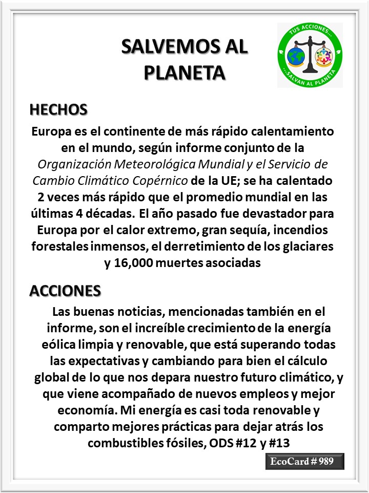 EcoCard # 989 Un año desvastador José Antonio Cárdenas Marroquín Uncategorized June 26, 2023 1 Minute Lydia P. Vignau y José A. Cárdenas Más información: Europe state of climate Más información: Wind Power’s Explosive GrowthShare this: Share on X (Opens in new window) X Share on Facebook (Opens in new window) Facebook Like Loading... Published June 26, 2023