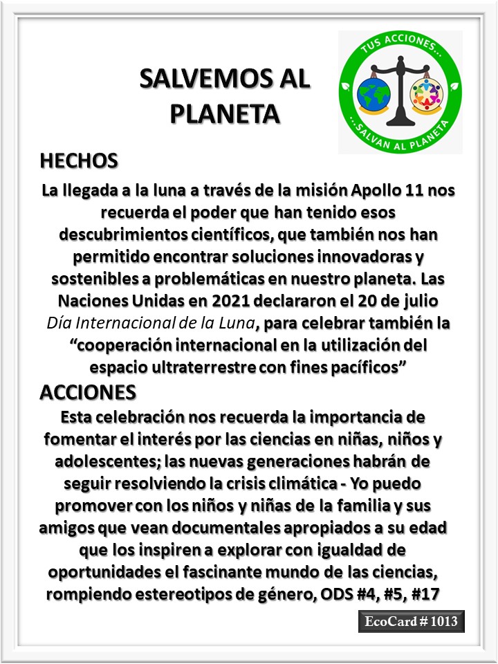 EcoCard # 1013 Día Internacional de la Luna José Antonio Cárdenas Marroquín Uncategorized July 20, 2023July 20, 2023 1 Minute Lydia P. Vignau y José A. Cárdenas Más información: International Moon DayShare this: Share on X (Opens in new window) X Share on Facebook (Opens in new window) Facebook Like Loading... Published July 20, 2023July 20, 2023