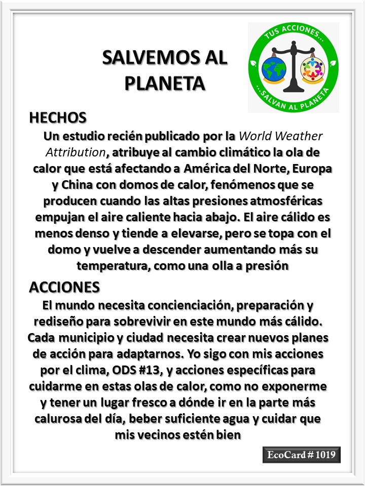 EcoCard # 1019 Un mundo más cálido José Antonio Cárdenas Marroquín Uncategorized July 27, 2023 1 Minute Lydia P. Vignau y José A. Cárdenas Más información: July heatwaves ‘virtually impossible’ without climate changeShare this: Share on X (Opens in new window) X Share on Facebook (Opens in new window) Facebook Like Loading... Published July 27, 2023