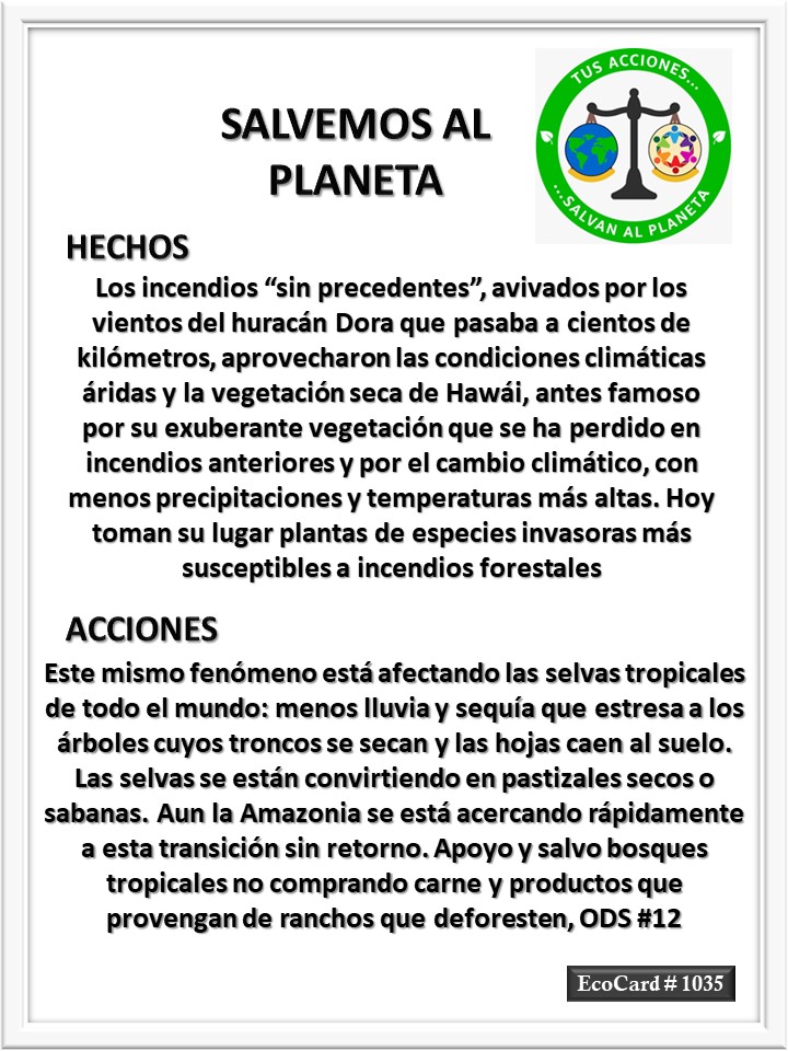 EcoCard # 1035 Condiciones climáticas áridas José Antonio Cárdenas Marroquín Uncategorized August 13, 2023 1 Minute Lydia P. Vignau y José A. Cárdenas Más información: International Hawaii firesShare this: Share on X (Opens in new window) X Share on Facebook (Opens in new window) Facebook Like Loading... Published August 13, 2023