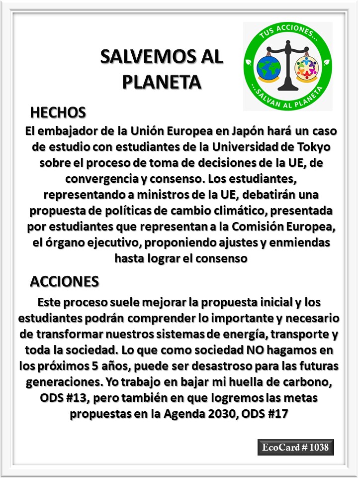 EcoCard # 1038 Bajar mi huella de carbono José Antonio Cárdenas Marroquín Uncategorized August 18, 2023August 18, 2023 1 Minute Lydia P. Vignau y José A. Cárdenas Más información: Launch of the Model EU in JapanShare this: Share on X (Opens in new window) X Share on Facebook (Opens in new window) Facebook Like Loading... Published August 18, 2023August 18, 2023