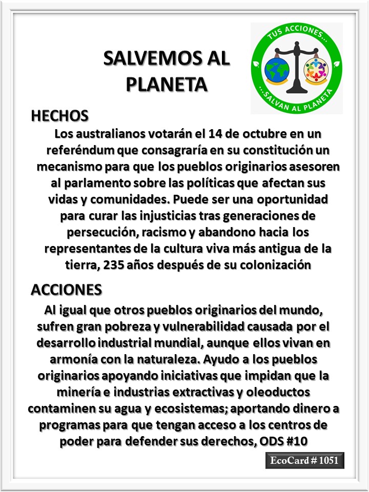 EcoCard # 1051 Los pueblos originarios José Antonio Cárdenas Marroquín Uncategorized August 31, 2023 1 Minute Lydia P. Vignau y José A. Cárdenas Más información: Australia sets date for historic referendum on its First Nations people Más información: Espiral por la Vida Share this: Click to share on X (Opens in new window) X Click to share on Facebook (Opens in new window) Facebook Like Loading... Published August 31, 2023