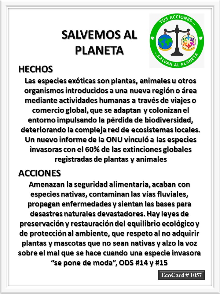 EcoCard # 1057 Especies invasoras José Antonio Cárdenas Marroquín Uncategorized September 7, 2023 1 Minute Lydia P. Vignau y José A. Cárdenas Más información: Invasive species cost the world $423 billion every year and are causing environmental chaos Share this: Share on X (Opens in new window) X Share on Facebook (Opens in new window) Facebook Like Loading... Published September 7, 2023