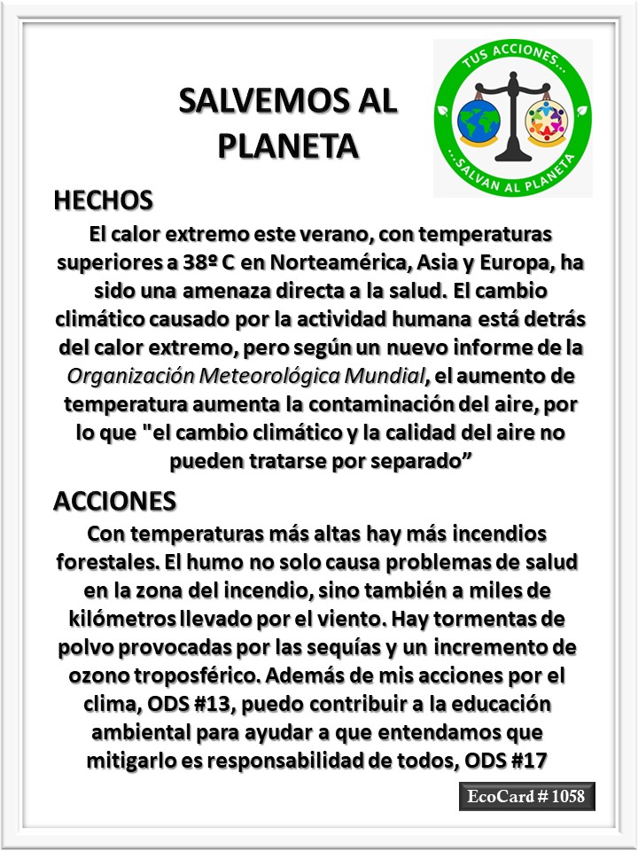 EcoCard # 1058 La calidad del aire José Antonio Cárdenas Marroquín Uncategorized September 8, 2023 1 Minute Lydia P. Vignau y José A. Cárdenas Más información: Extreme heat makes air quality worse–that’s bad for health Share this: Share on X (Opens in new window) X Share on Facebook (Opens in new window) Facebook Like Loading... Published September 8, 2023