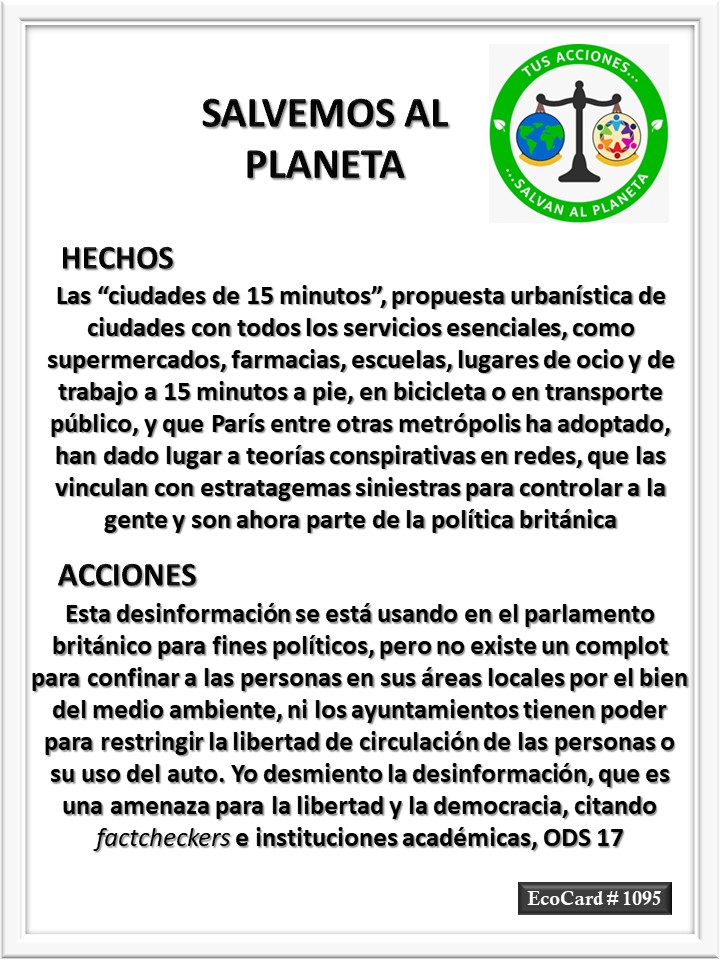 EcoCard #1095 Teorías de conspiración José Antonio Cárdenas Marroquín Uncategorized October 16, 2023 1 Minute Lydia P. Vignau y José A. Cárdenas Más información: 15 minute cities: How they got caught in conspiracy theories Share this: Share on X (Opens in new window) X Share on Facebook (Opens in new window) Facebook Like Loading... Published October 16, 2023