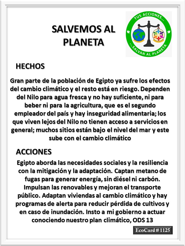EcoCard #1125 Mitigación y adaptación José Antonio Cárdenas Marroquín Uncategorized November 15, 2023 1 Minute Lydia P. Vignau y José A. Cárdenas Más información: Climate Change in Egypt: Opportunities and ObstaclesShare this: Share on X (Opens in new window) X Share on Facebook (Opens in new window) Facebook Like Loading... Published November 15, 2023