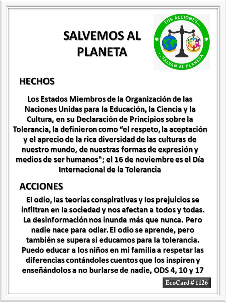 EcoCard #1126 La rica diversidad de las culturas José Antonio Cárdenas Marroquín Uncategorized November 16, 2023 1 Minute Lydia P. Vignau y José A. Cárdenas Más información: Día Internacional para la Tolerancia16 de noviembreShare this: Click to share on X (Opens in new window) X Click to share on Facebook (Opens in new window) Facebook Like Loading... Published November 16, 2023