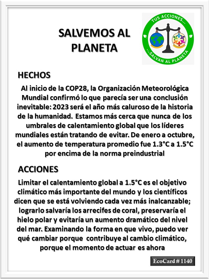 EcoCard #1140 El objetivo clímatico José Antonio Cárdenas Marroquín Uncategorized December 2, 2023 1 Minute Lydia P. Vignau y José A. Cárdenas Más información: Earth hottest year Share this: Share on X (Opens in new window) X Share on Facebook (Opens in new window) Facebook Like Loading... Published December 2, 2023