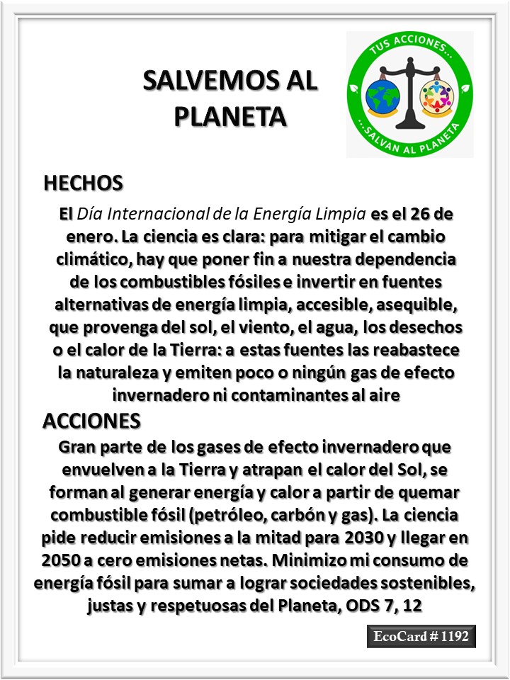 EcoCard #1192 Energía limpia José Antonio Cárdenas Marroquín Uncategorized January 27, 2024January 27, 2024 1 Minute Lydia P. Vignau y José A. Cárdenas Más información: Day of Clean Energy Más información: Renewable energy – powering a safer futureShare this: Share on X (Opens in new window) X Share on Facebook (Opens in new window) Facebook Like Loading... Published January 27, 2024January 27, 2024