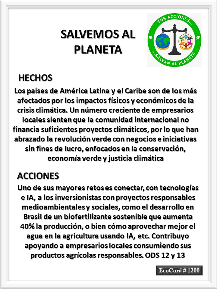 EcoCard #1200 Productos agrícolas responsables José Antonio Cárdenas Marroquín Uncategorized February 4, 2024 1 Minute Lydia P. Vignau y José A. Cárdenas Más información: Low-carbon milk to AI irrigation: tech startups powering Latin America’s green revolutionShare this: Share on X (Opens in new window) X Share on Facebook (Opens in new window) Facebook Like Loading... Published February 4, 2024
