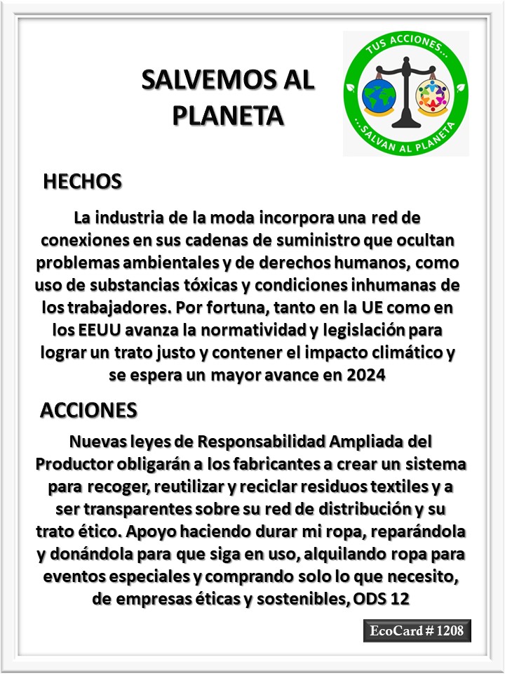 EcoCard #1208 Responsabilidad ampliada José Antonio Cárdenas Marroquín Uncategorized February 12, 2024February 12, 2024 1 Minute Lydia P. Vignau y José A. Cárdenas Más información: The sustainability policy changes that fashion retail needs to know in 2024Share this: Click to share on X (Opens in new window) X Click to share on Facebook (Opens in new window) Facebook Like Loading... Published February 12, 2024February 12, 2024