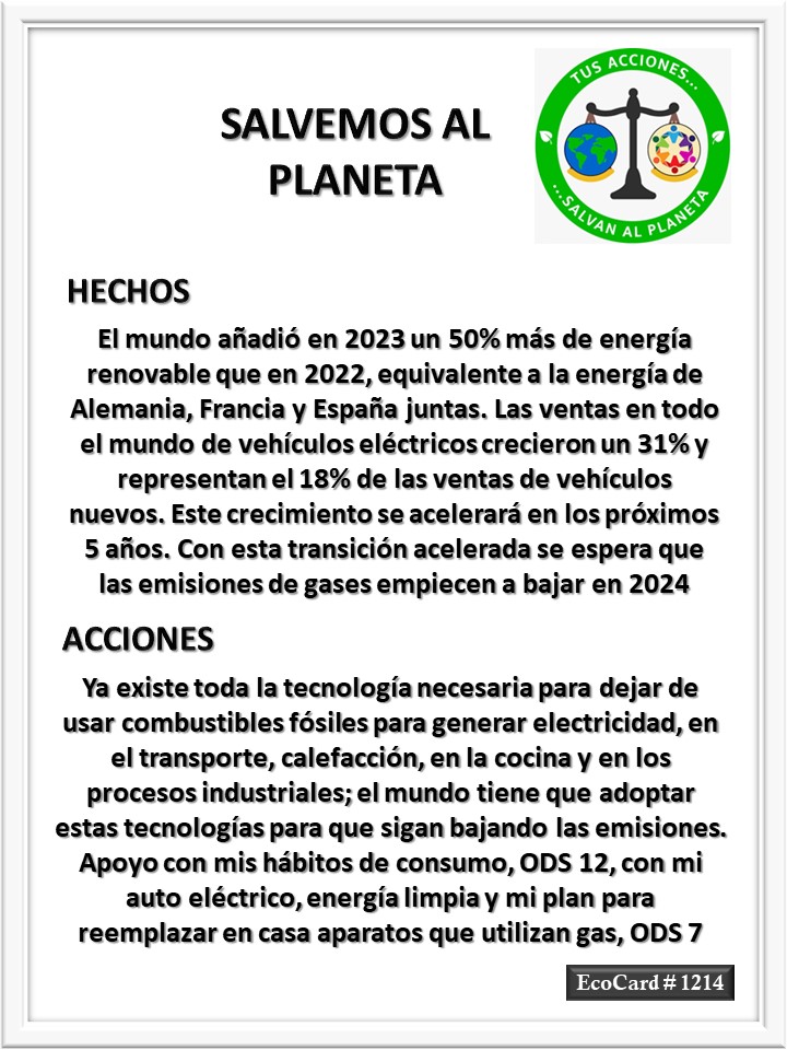 EcoCard #1214 Energías renovables José Antonio Cárdenas Marroquín Uncategorized February 18, 2024 1 Minute Lydia P. Vignau y José A. Cárdenas Más información: ‘It’s not game over—it’s game on’: Why 2024 is an inflection point for the climate crisisShare this: Share on X (Opens in new window) X Share on Facebook (Opens in new window) Facebook Like Loading... Published February 18, 2024