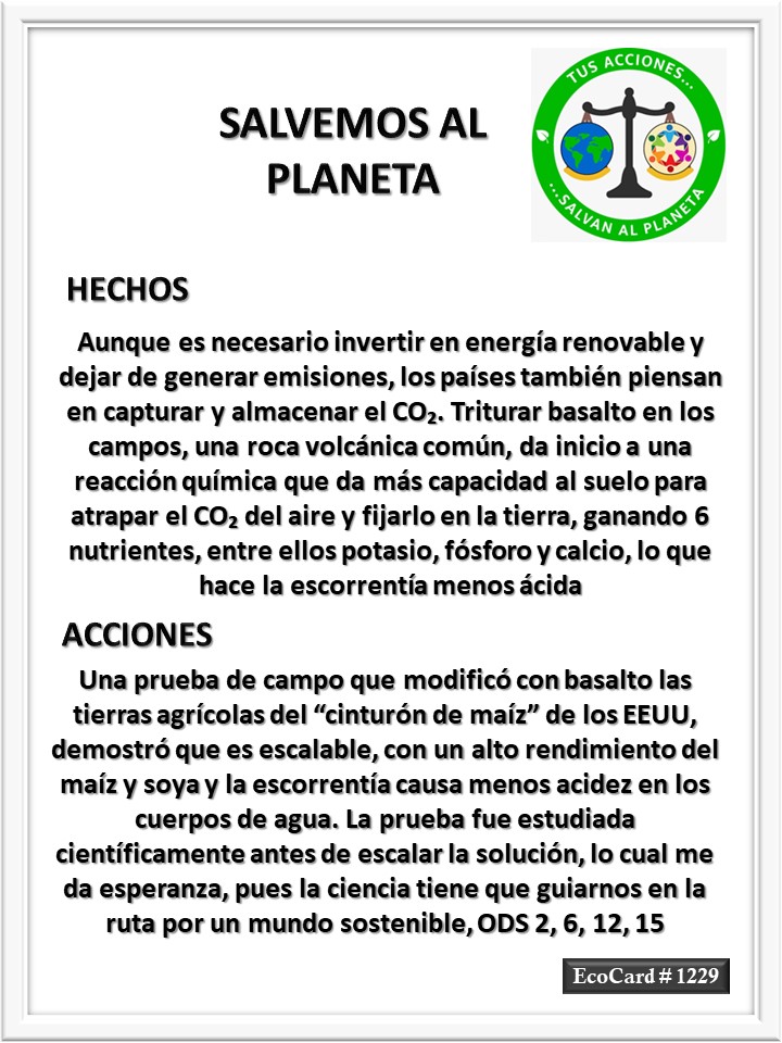 EcoCard #1229 La ciencia tiene que guiarnos José Antonio Cárdenas Marroquín Uncategorized March 4, 2024 1 Minute Lydia P. Vignau y José A. Cárdenas Más información: Enhanced weathering in the US Corn Belt delivers carbon removal with agronomic benefits Más información: El polvo de roca aplicado a campos agrícolas podría ayudar a capturar 2B de toneladas de CO2 Share this: Share on X (Opens in new window) X Share on Facebook (Opens in new window) Facebook Like Loading... Published March 4, 2024
