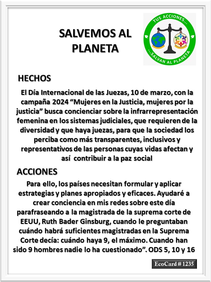 EcoCard #1235 Mujeres por la justicia José Antonio Cárdenas Marroquín Uncategorized March 10, 2024March 10, 2024 1 Minute Lydia P. Vignau y José A. Cárdenas Más información: International Day of Women Judges – 10 March Más información: The Legacy of Justice Ruth Bader GinsburgShare this: Click to share on X (Opens in new window) X Click to share on Facebook (Opens in new window) Facebook Like Loading... Published March 10, 2024March 10, 2024