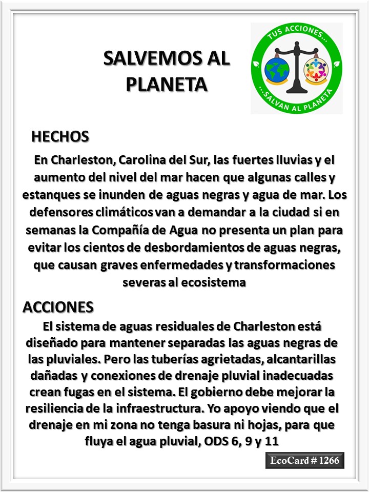EcoCard #1266 Aguas residuales José Antonio Cárdenas Marroquín Uncategorized April 13, 2024 1 Minute Lydia P. Vignau y José A. Cárdenas Más información: Heavy Rain and Rising Sea Levels Are Sending Sewage Into Some Charleston Streets and PondsShare this: Share on X (Opens in new window) X Share on Facebook (Opens in new window) Facebook Like Loading... Published April 13, 2024