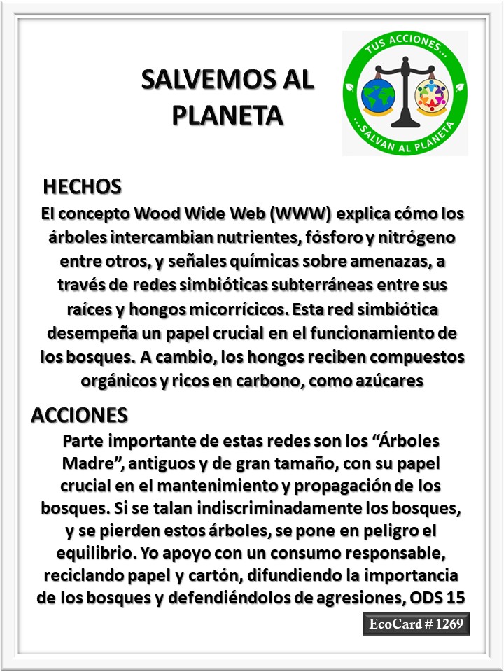 EcoCard #1269 El equilibrio en los bosques José Antonio Cárdenas Marroquín Uncategorized April 16, 2024 1 Minute Lydia P. Vignau y José A. Cárdenas Más información: La Wood Wide Web, la red subterránea de hongos por la que los árboles pueden comunicarseShare this: Click to share on X (Opens in new window) X Click to share on Facebook (Opens in new window) Facebook Like Loading... Published April 16, 2024