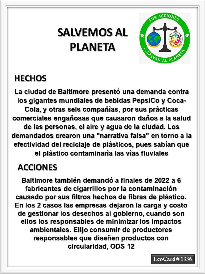 EcoCard #1336 Una narrativa falsa José Antonio Cárdenas Marroquín Uncategorized June 25, 2024 1 Minute Lydia P. Vignau y José A. Cárdenas Más información: Declaring an Epidemic of ‘Toxic Litter,’ Baltimore Targets Plastic Makers and Packaging in the Latest Example of Plastics Litigation – Inside Climate NewsShare this: Share on X (Opens in new window) X Share on Facebook (Opens in new window) Facebook Like Loading... Published June 25, 2024