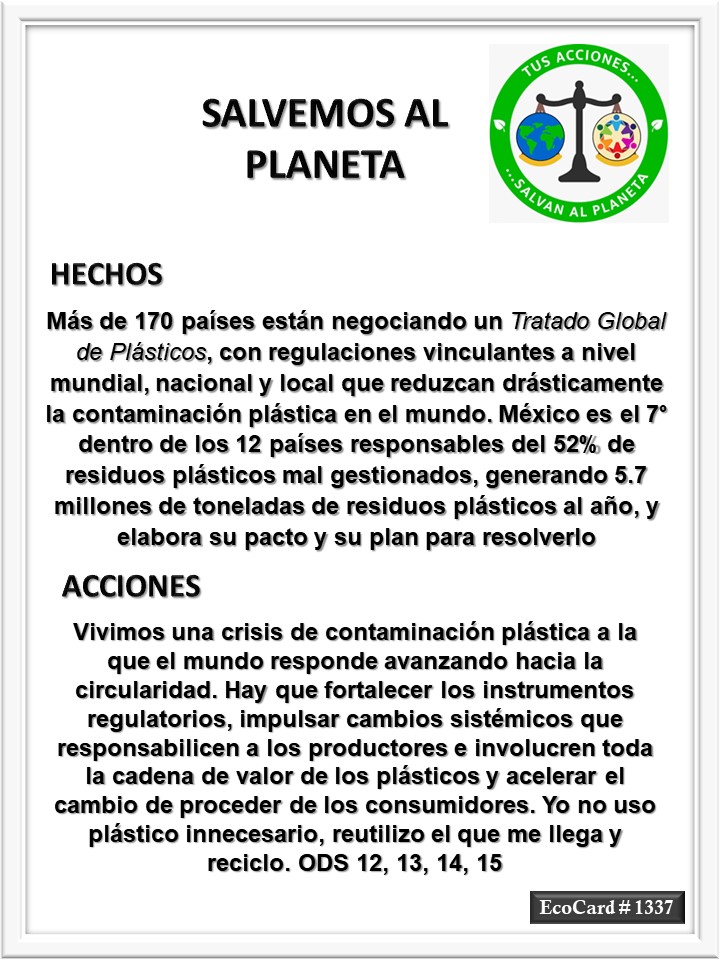 EcoCard #1337 Residuos plásticos José Antonio Cárdenas Marroquín Uncategorized June 26, 2024 1 Minute Lydia P. Vignau y José A. Cárdenas Más información: El Pacto de los Plásticos de México (PPMX) Más información: Mala gestión en México de 5.7 millones de ton de residuos plásticos por año Share this: Share on X (Opens in new window) X Share on Facebook (Opens in new window) Facebook Like Loading... Published June 26, 2024
