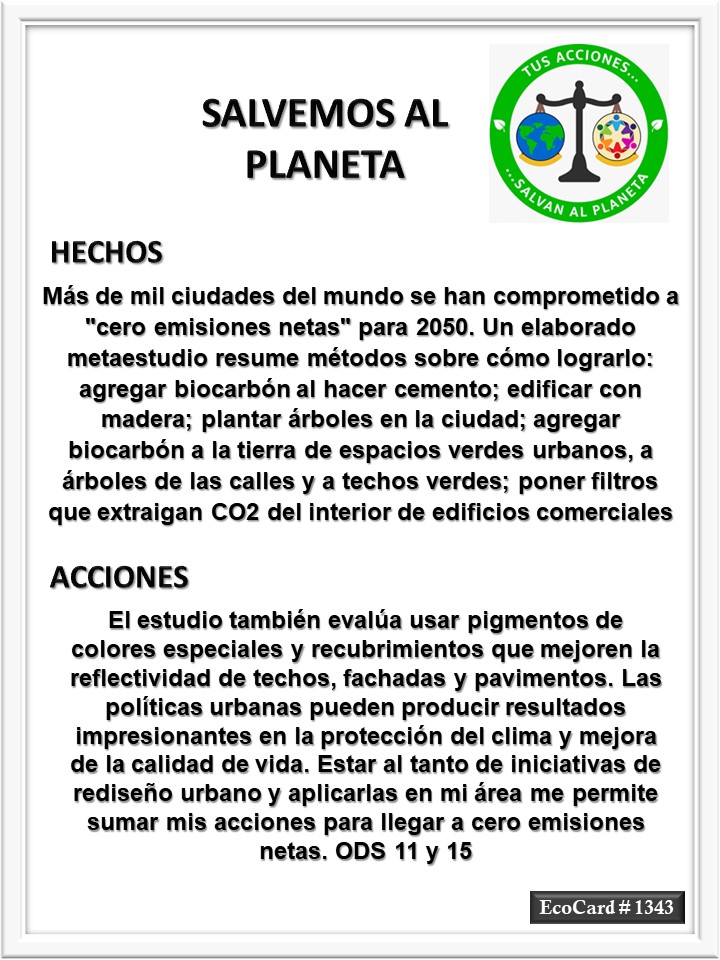 EcoCard #1343 Cero emisiones netas José Antonio Cárdenas Marroquín Uncategorized July 2, 2024 1 Minute Lydia P. Vignau y José A. Cárdenas Más información: How green cities could remove CO₂ from the atmosphereShare this: Share on X (Opens in new window) X Share on Facebook (Opens in new window) Facebook Like Loading... Published July 2, 2024