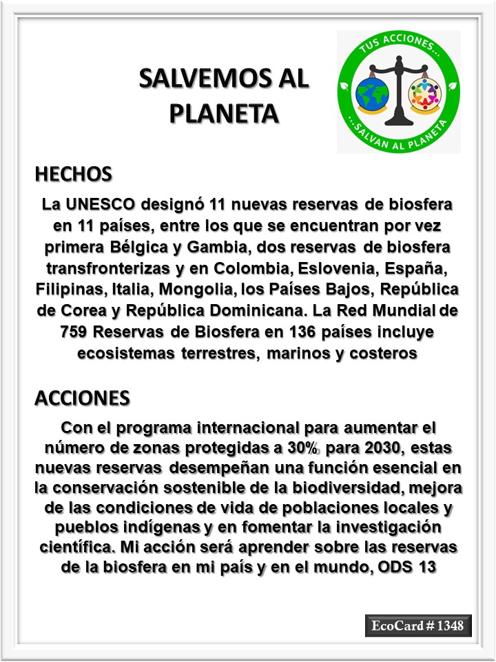 EcoCard #1348 Reservas de biósfera José Antonio Cárdenas Marroquín Uncategorized July 7, 2024July 7, 2024 1 Minute Lydia P. Vignau y José A. Cárdenas Más información: La UNESCO designa 11 nuevas reservas de biosfera | UNESCOShare this: Share on X (Opens in new window) X Share on Facebook (Opens in new window) Facebook Like Loading... Published July 7, 2024July 7, 2024