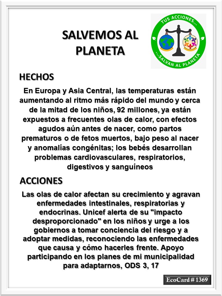 EcoCard #1369 Adoptar medidas José Antonio Cárdenas Marroquín Uncategorized July 28, 2024 1 Minute Lydia P. Vignau y José A. Cárdenas Más información: Rising heat in Europe and Central Asia killing almost 400 children a year: UNICEFShare this: Share on X (Opens in new window) X Share on Facebook (Opens in new window) Facebook Like Loading... Published July 28, 2024