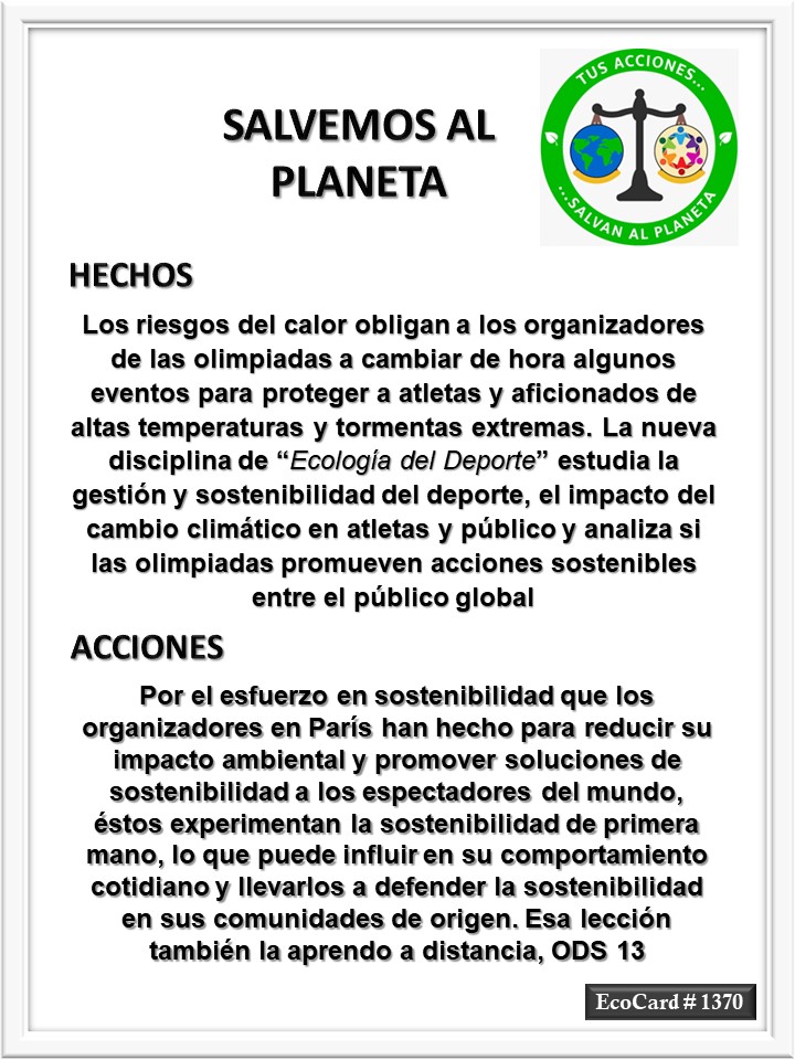 EcoCard #1370 Ecología del deporte José Antonio Cárdenas Marroquín Uncategorized July 29, 2024 1 Minute Lydia P. Vignau y José A. Cárdenas Más información: Paris Olympics promote sustainability for good reason: Climate change is putting athletes and their sports at risk Share this: Share on X (Opens in new window) X Share on Facebook (Opens in new window) Facebook Like Loading... Published July 29, 2024