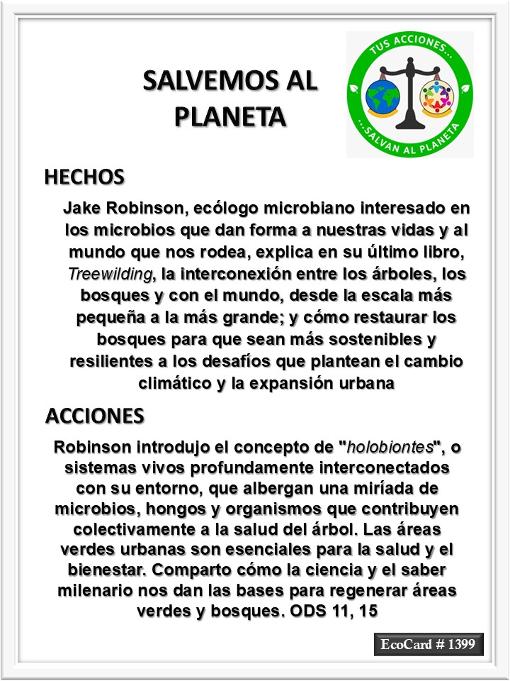 EcoCard #1399 Restaurar los bosques José Antonio Cárdenas Marroquín Uncategorized August 27, 2024August 27, 2024 1 Minute Lydia P. Vignau y José A. Cárdenas Más información: Rethinking Our Relationship with Trees Share this: Share on X (Opens in new window) X Share on Facebook (Opens in new window) Facebook Like Loading... Published August 27, 2024August 27, 2024