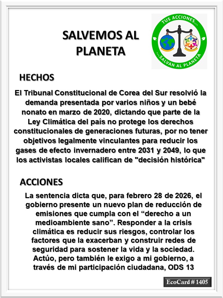 EcoCard #1405 Las generaciones futuras José Antonio Cárdenas Marroquín Uncategorized September 2, 2024September 2, 2024 1 Minute Lydia P. Vignau y José A. Cárdenas Más información: South Korea’s climate law violates rights of future generations, court rules Más información: EcoCard # 1376 Despertar Conciencia Share this: Share on X (Opens in new window) X Share on Facebook (Opens in new window) Facebook Like Loading... Published September 2, 2024September 2, 2024