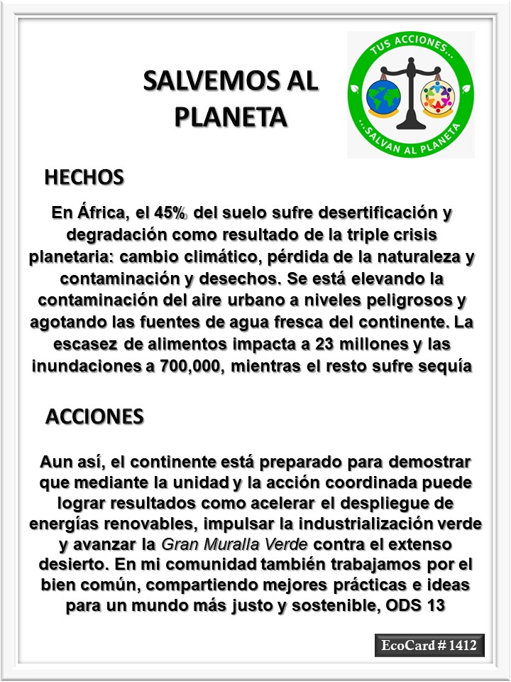 EcoCard #1412 La Gran Muralla Verde José Antonio Cárdenas Marroquín Uncategorized September 8, 2024September 8, 2024 1 Minute Lydia P. Vignau y José A. Cárdenas Más información: A triple planetary crisis scarring Africa’s landscapes Share this: Share on X (Opens in new window) X Share on Facebook (Opens in new window) Facebook Like Loading... Published September 8, 2024September 8, 2024
